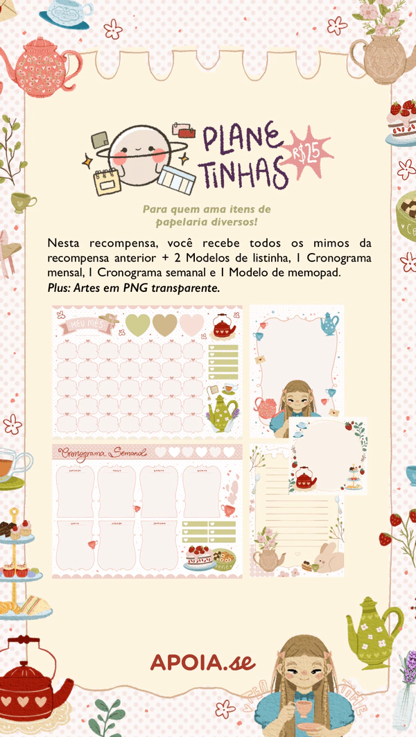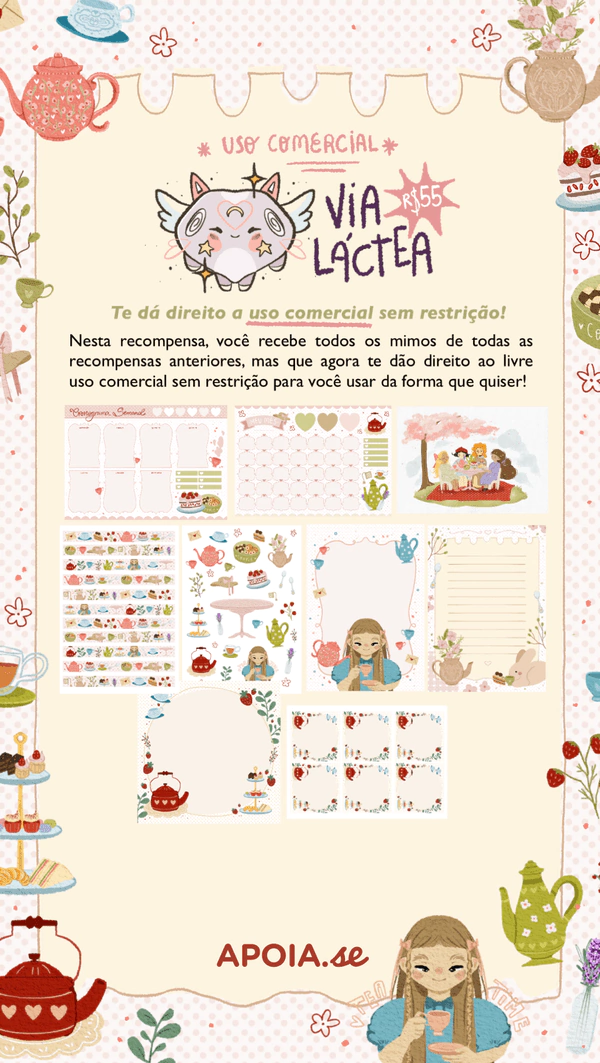 - Você vai receber a recompensa "PLANETINHAS" que engloba todas as demais recompensas e terá permissão de uso comercial livre sem restrição para usar da forma que quiser. Créditos não são necessários, mas caso queira dar fique à vontade. Todo tipo de ideia pode ser aplicada para a compra dessa recompensa.