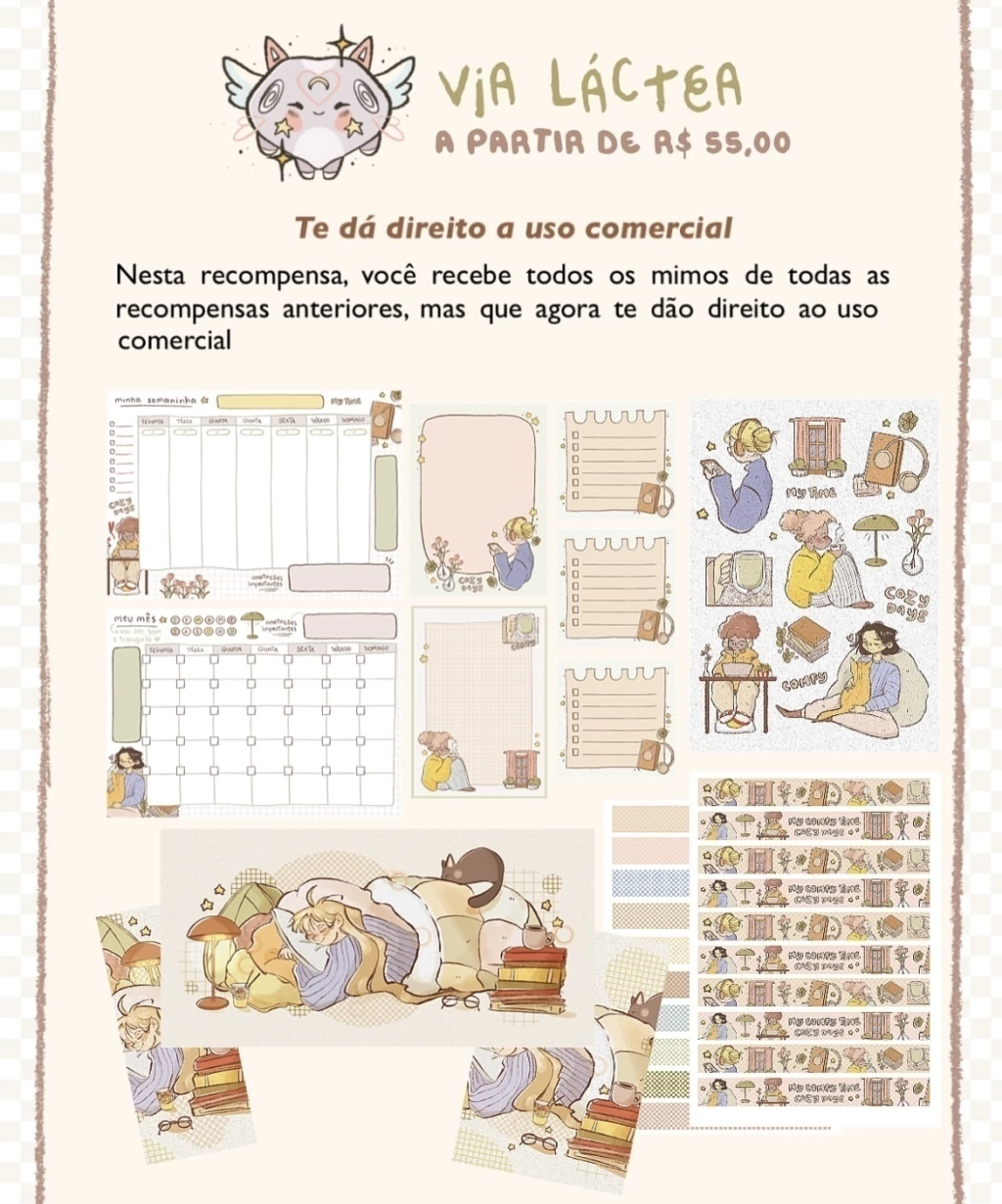 - Você vai receber a recompensa "PLANETINHAS" que engloba todas as demais recompensas e terá permissão de uso comercial livre sem restrição para usar da forma que quiser. Créditos não são necessários, mas caso queira dar fique à vontade. Todo tipo de ideia pode ser aplicada para a compra dessa recompensa.