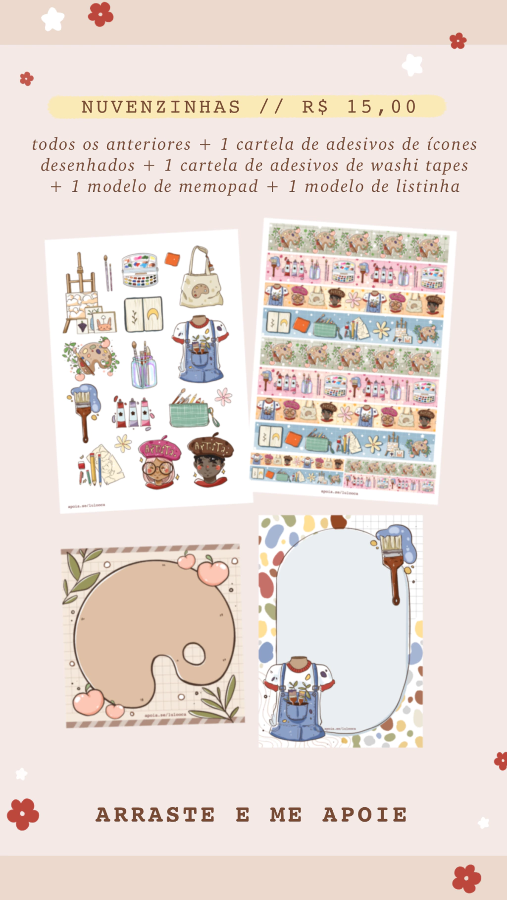 - 2 Cartelas de adesivo (washi tapes + desenhos)