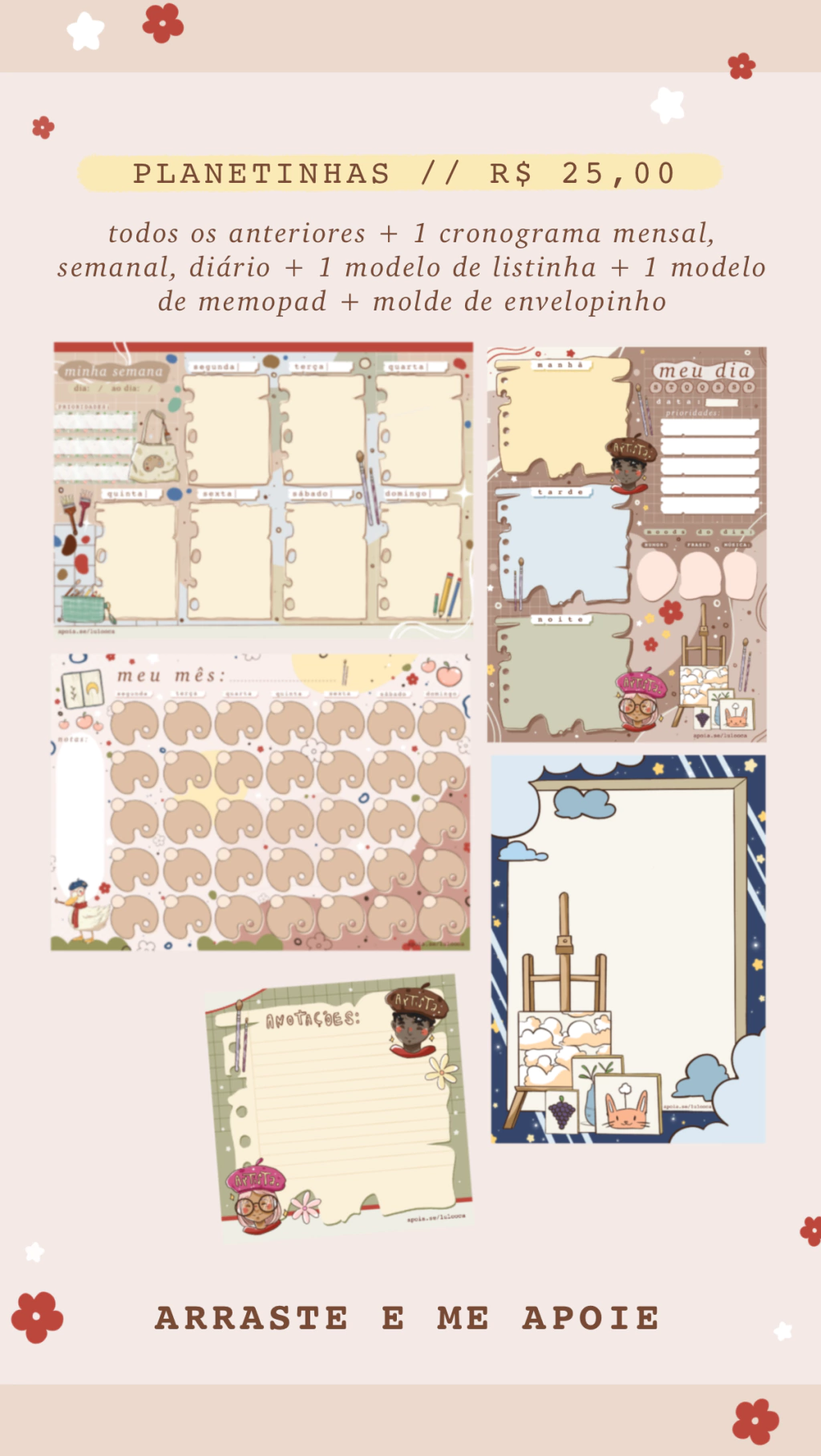 Na foto, você consegue visualizar uma prévia de todos os itens, mas caso queira ver melhor e mais especificamente cada um, é só acessar esse link: https://drive.google.com/drive/folders/1mq0ujRK55HAeP1Yx4b3hK97Dyp7ZKaRs?usp=sharing