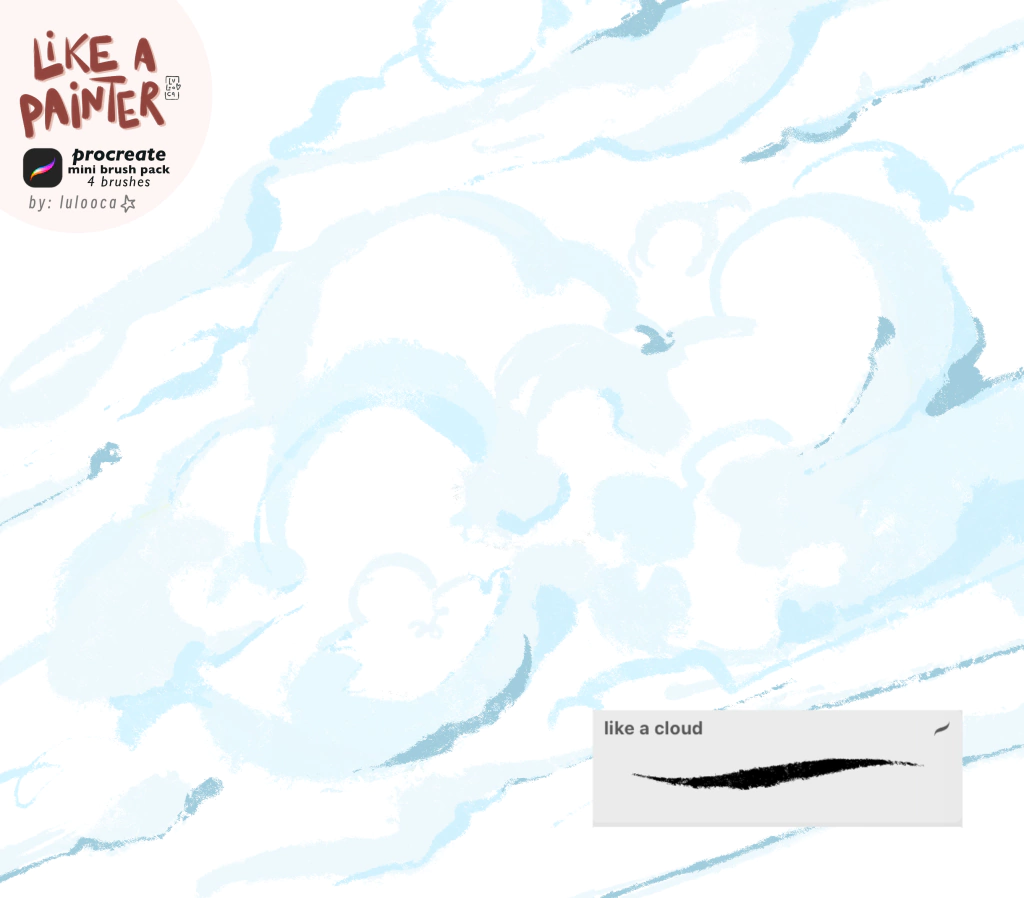 Um mini pack com 4 brushes exclusivos feitos pela Lulooca, para você baixar e usar apenas no Procreate