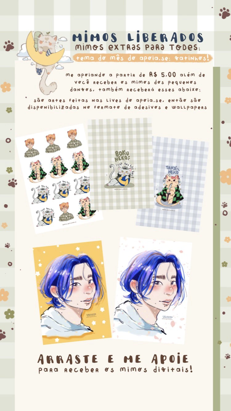- 1 Cartela de adesivos de ilustras feitas numa live do Apoia.se