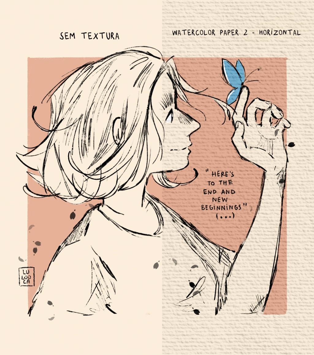 Chegou na Luloojinha um dos produtos mais pedidos e esperados por vocês! Um pack com 5 texturas em png exclusivas feitas do zero por mim (Lulooca) escaneando papéis de aquarela que eu tenho em casa, tratando com muito carinho e desenvolvendo através do desenho e da mistura de brushes também que simulam o efeito de estar desenhando no tradicional, em uma tela ou em um papel de aquarela. Aquela texturinha que dá um ar extremamente reconfortante e aconchegante ao seu desenho!