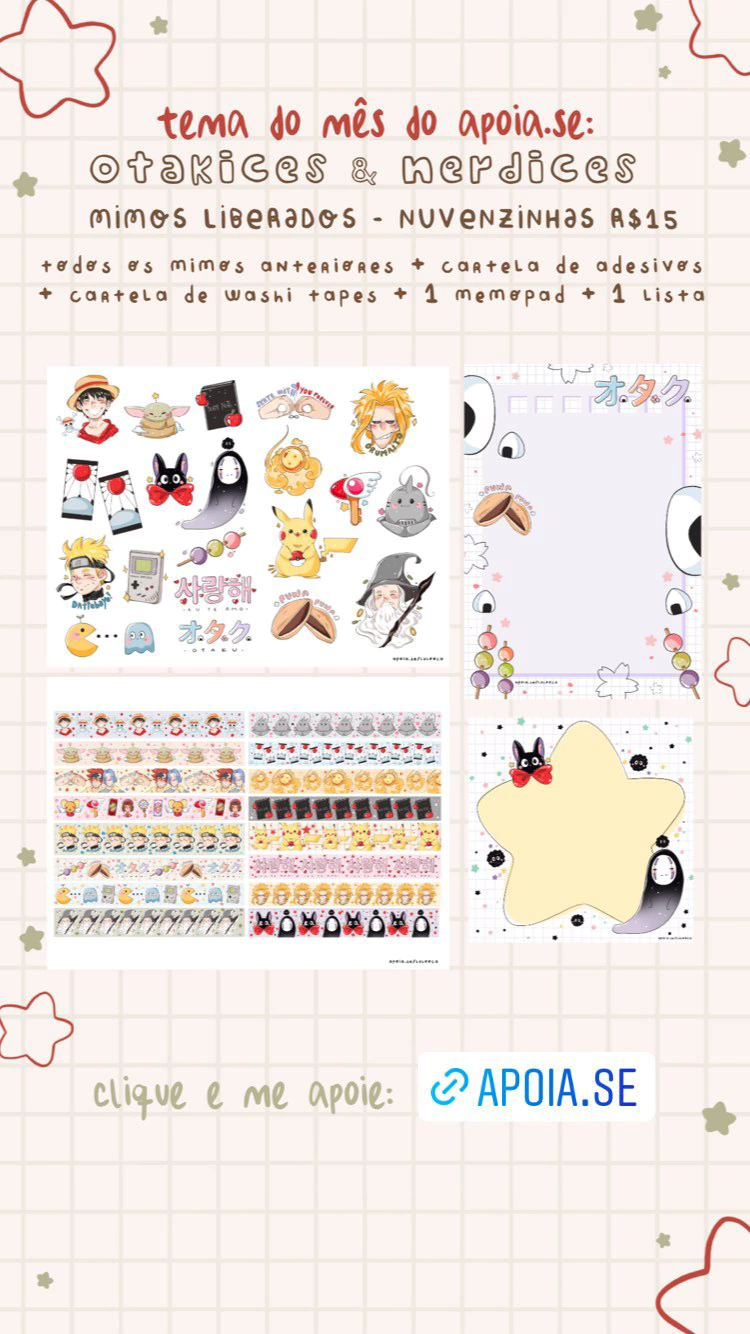 - 2 Cartelas de adesivo (washi tapes + desenhos)